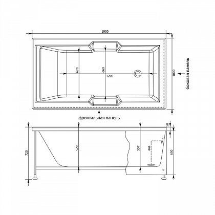 • Размер: 190x100x72 см. Глубина: 50 см. Объем: 450 л.