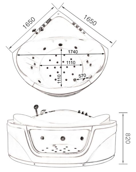 Акриловая ванна Gemy G9247 K 165x165x82 купить