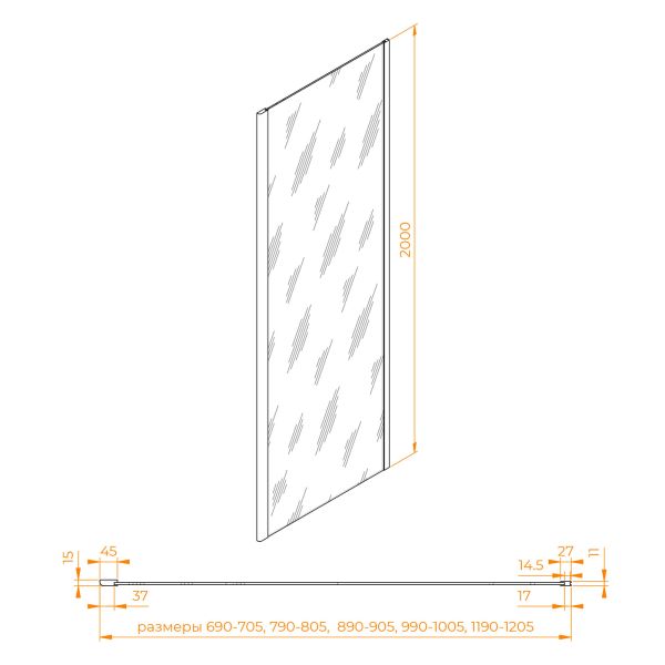 Комплектуется с моделями высотой 2000 мм и цветом профиля «хром». Подходит к моделя... Подробнее