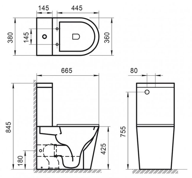 - Укороченный унитаз:нет