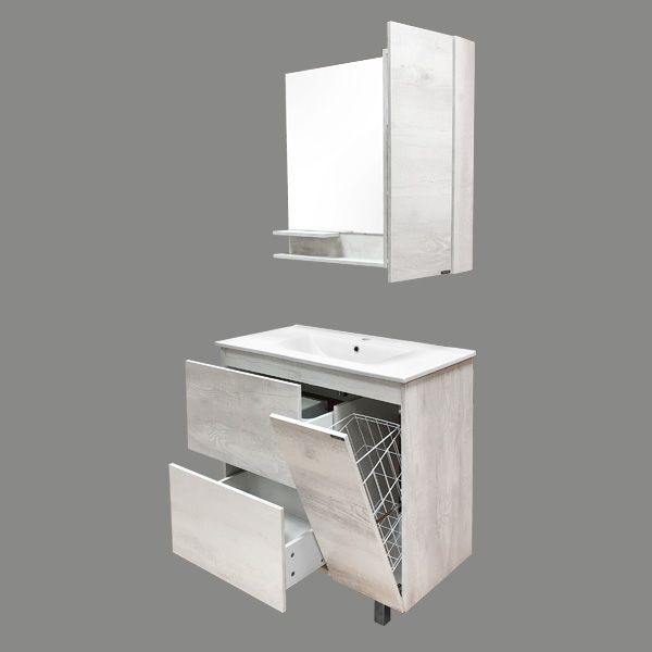 Название: Зеркало шкаф с полкой Артикул: Верона 90 (правое) Варианты цвета: Дуб белый Материал корпуса и фасада: влагостойкое ЛДСП Габариты (ШхВхГ): 900*800*150 мм Зеркальное высококачественное полотно с амальгамой на основе серебра. Створка мебельного элемента оснащена петлями с функцией плавного закрывания. За створкой две горизонтальные полки.