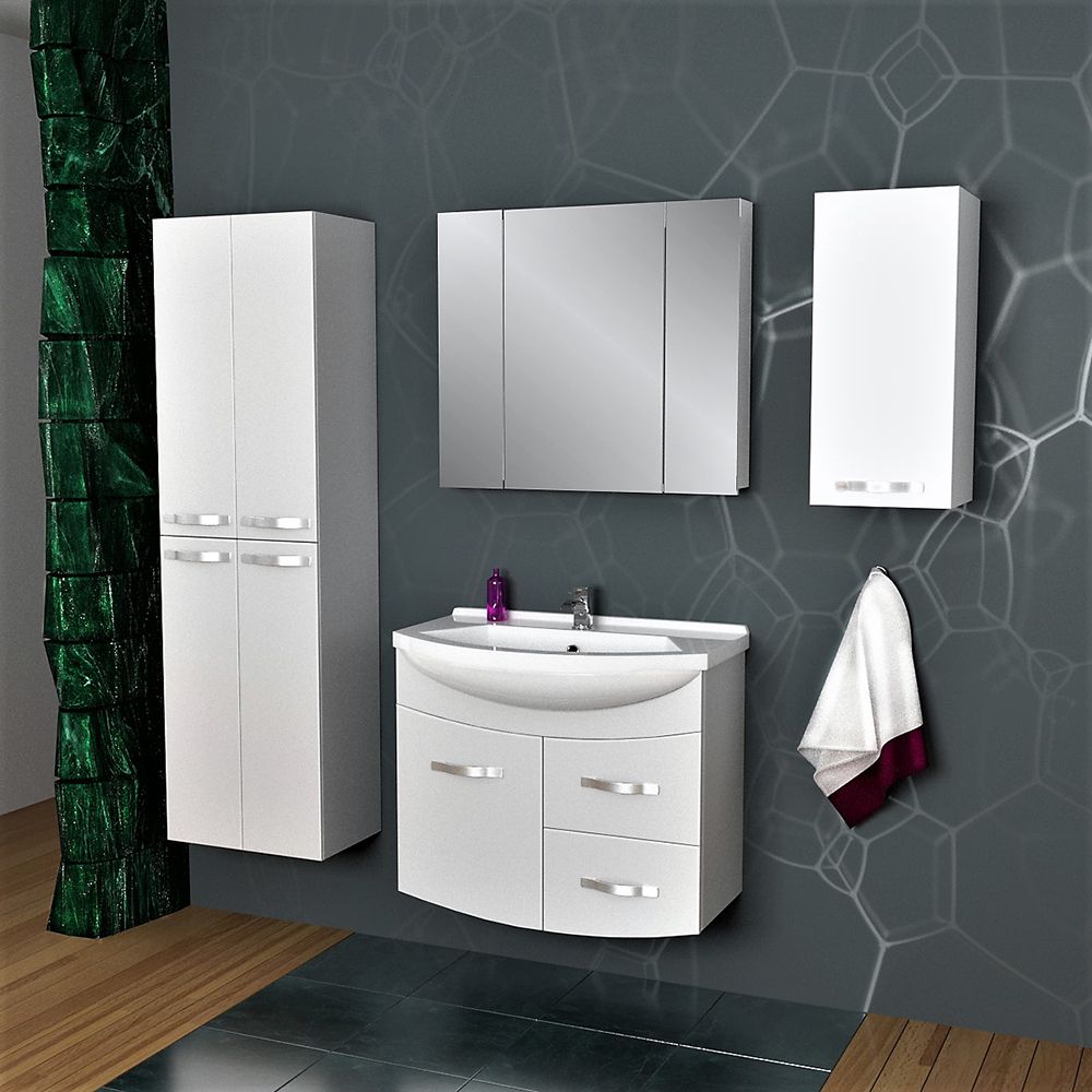 Французское зеркальное полотно. Универсальный зеркальный шкаф. Боковины - глянцевое МДФ. Внутренние стеклянные полочки. Крепление к стене - гребенка. Подходит к любой коллекции Dreja.eco