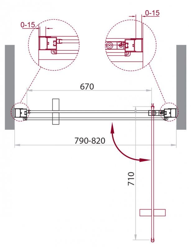 Регулируемый пристенный профиль, позволяет без проблем установить изделие даже при кривизне стен