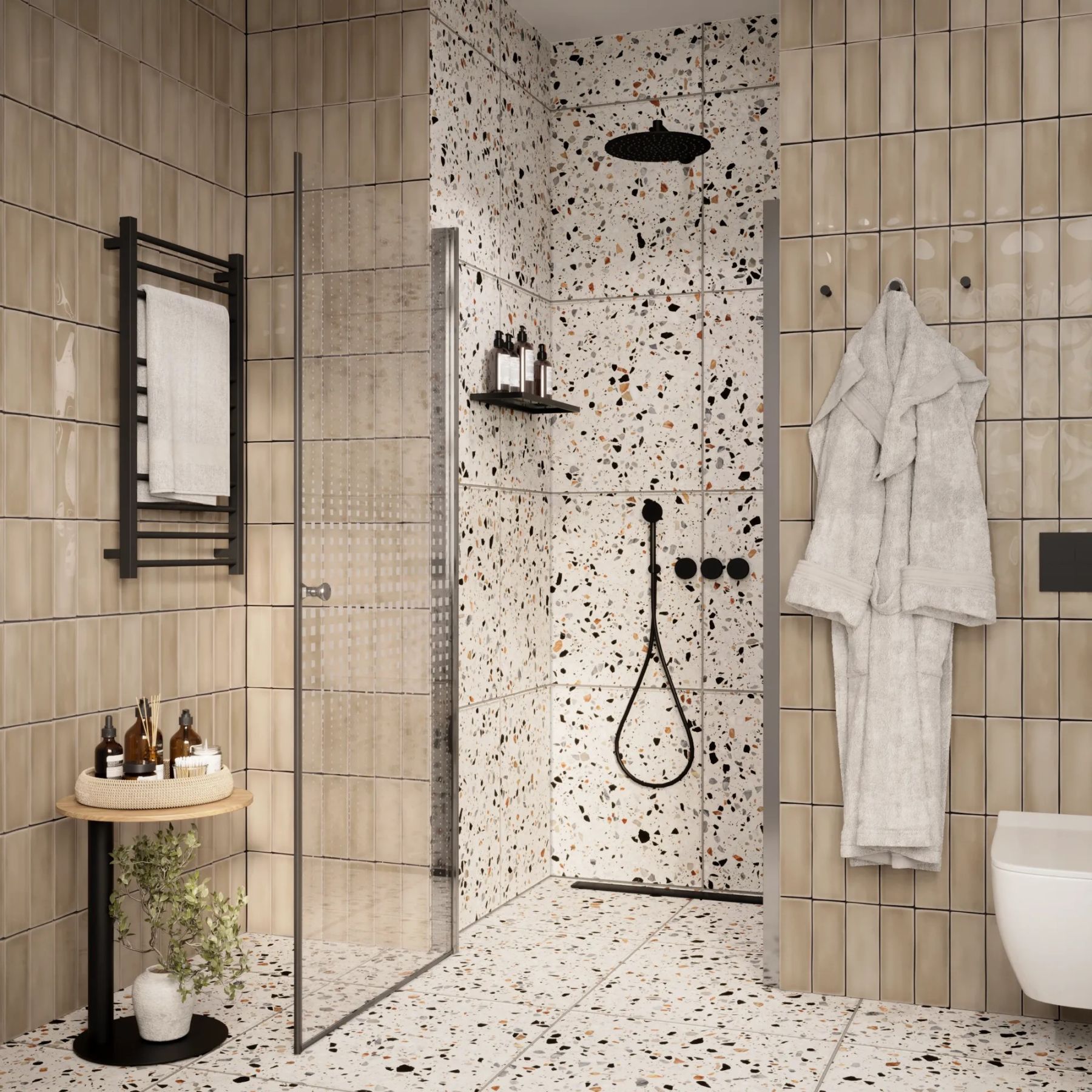 • Душевая дверь помогает зонировать помещение на отдельные функциональные участки.