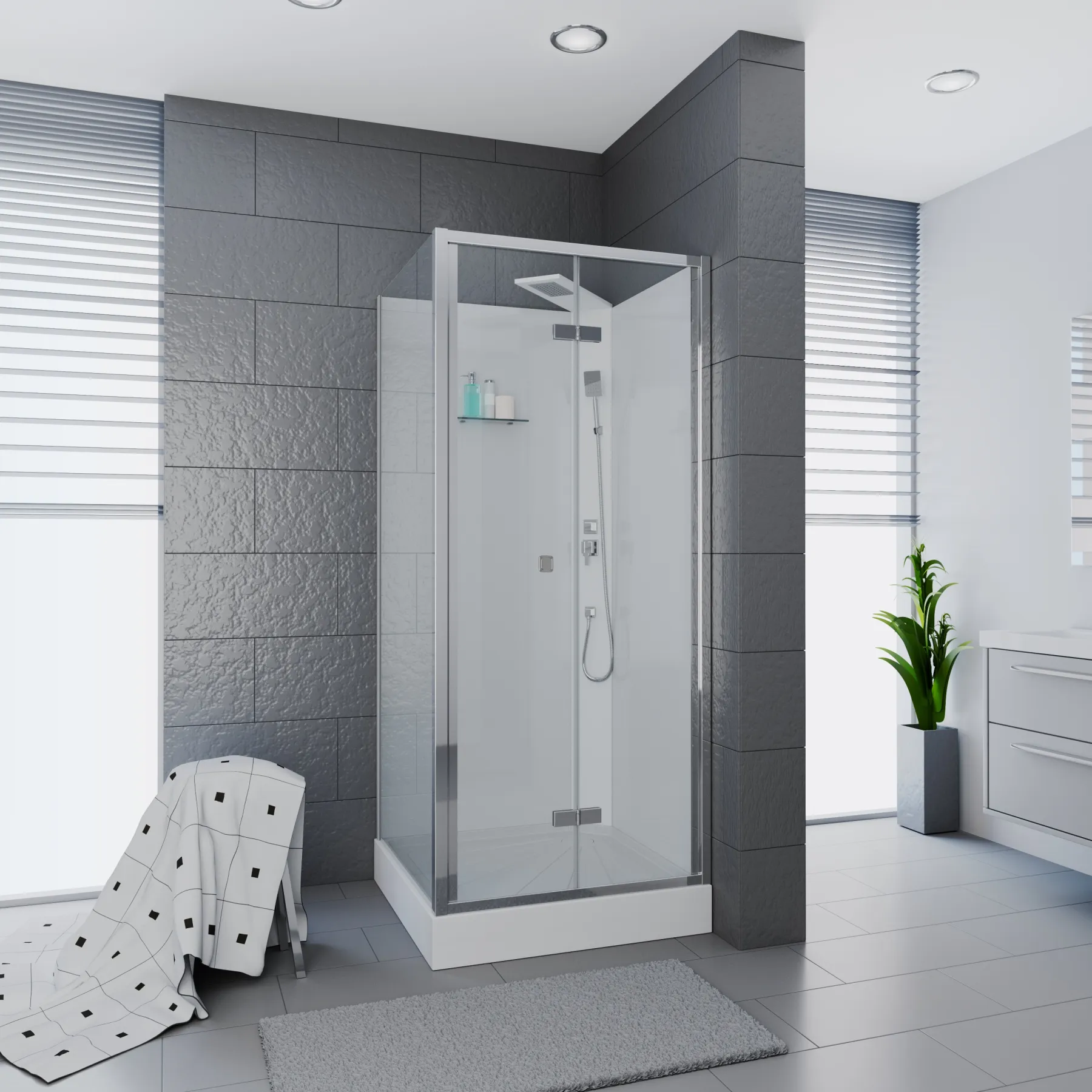 Смеситель и ручной душ — квадратной формы,