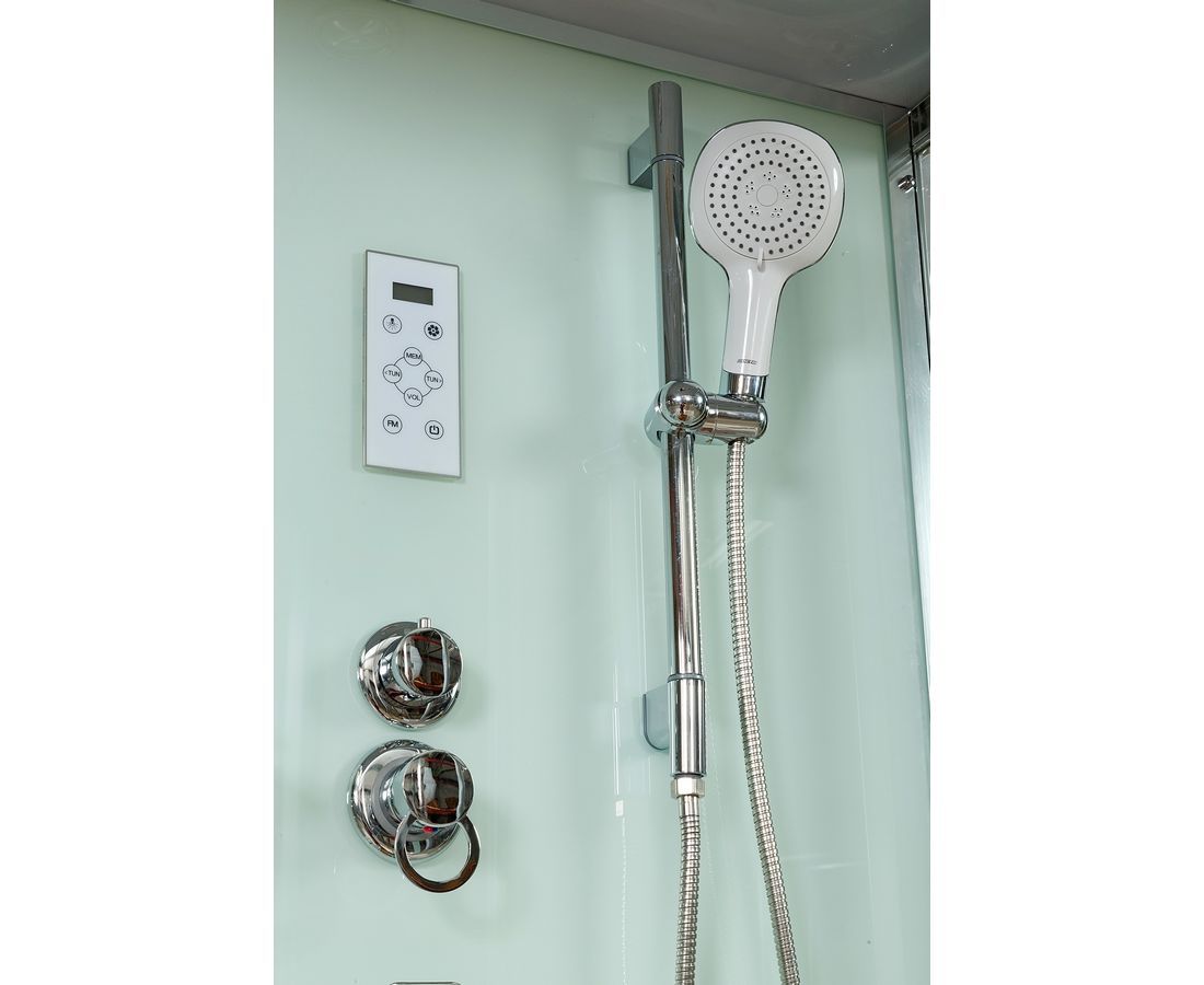 • Душевая кабина Deto V9015 (с крышей,гидромассажем,электрикой,LED подсветкой и табуретом)