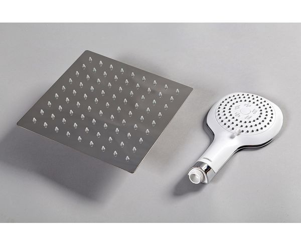 • Широкий верхний душ с самоочищающимися резиновыми джетами;