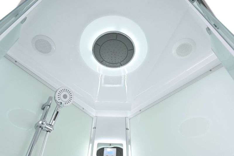 Стильная душевая кабина AvaCan EM2010LEDT сочетает в себе высокую функциональность, практичность и надежность. При изготовлении применяется безопасное закаленное стекло толщиной 5 мм (прозрачное), надежно фиксируемое алюминиевым профилем. Сборка без силикона (увеличивает срок службы), внутренняя сборка(облегчает установку и ревизию; позволяет установить в ограниченном пространстве), смеситель резьбовой (без хомутов). Съемный экран поддона (позволяет осуществлять ревизию сифона). Цвет профиля  хром. Двойные металлические ролики дверей (увеличивают срок службы).В комплекте : душевая штанга, две полочки , тропический (верхний) душ, арома-лейка с витамином С (картридж съемный),полимерная вставка в поддон(имитация дерева),сифон, ручки дверей из нержавейки , двойные ролики ,пульт сенсорный(Блютуз ,LED подсветка ,радио ,вытяжка),гидромассаж спины.