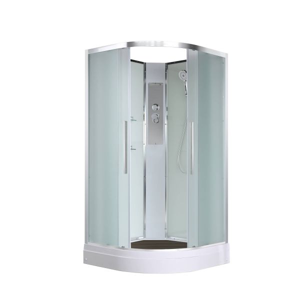 Стильная душевая кабина AvaCan сочетает в себе высокую функциональность, практичность и надежность. При изготовлении применяется безопасное закаленное стекло, надежно фиксируемое алюминиевым профилем. Профиль сделан из алюминия повышенной прочности. Сборка без силикона (увеличивает срок службы, защищает от протечек), внутренняя сборка (облегчает установку и ревизию; позволяет установить в ограниченном пространстве и обойтись без демонтажа других сантехнических приборов), смеситель резьбовой (без хомутов). Съемный экран поддона (позволяет осуществлять подключение и ревизию сифона).Двойные металлические ролики дверей (распределение нагрузки на два ролика, увеличивают срок службы). Душевая штанга(позволяет регулировать по высоте ручную лейку), ручная арома-лейка с витамином С (картридж в комплекте,есть возможность замены или удаления картриджа), полочки(из стекла, с ограничителем), сифон с гидрозатвором.
