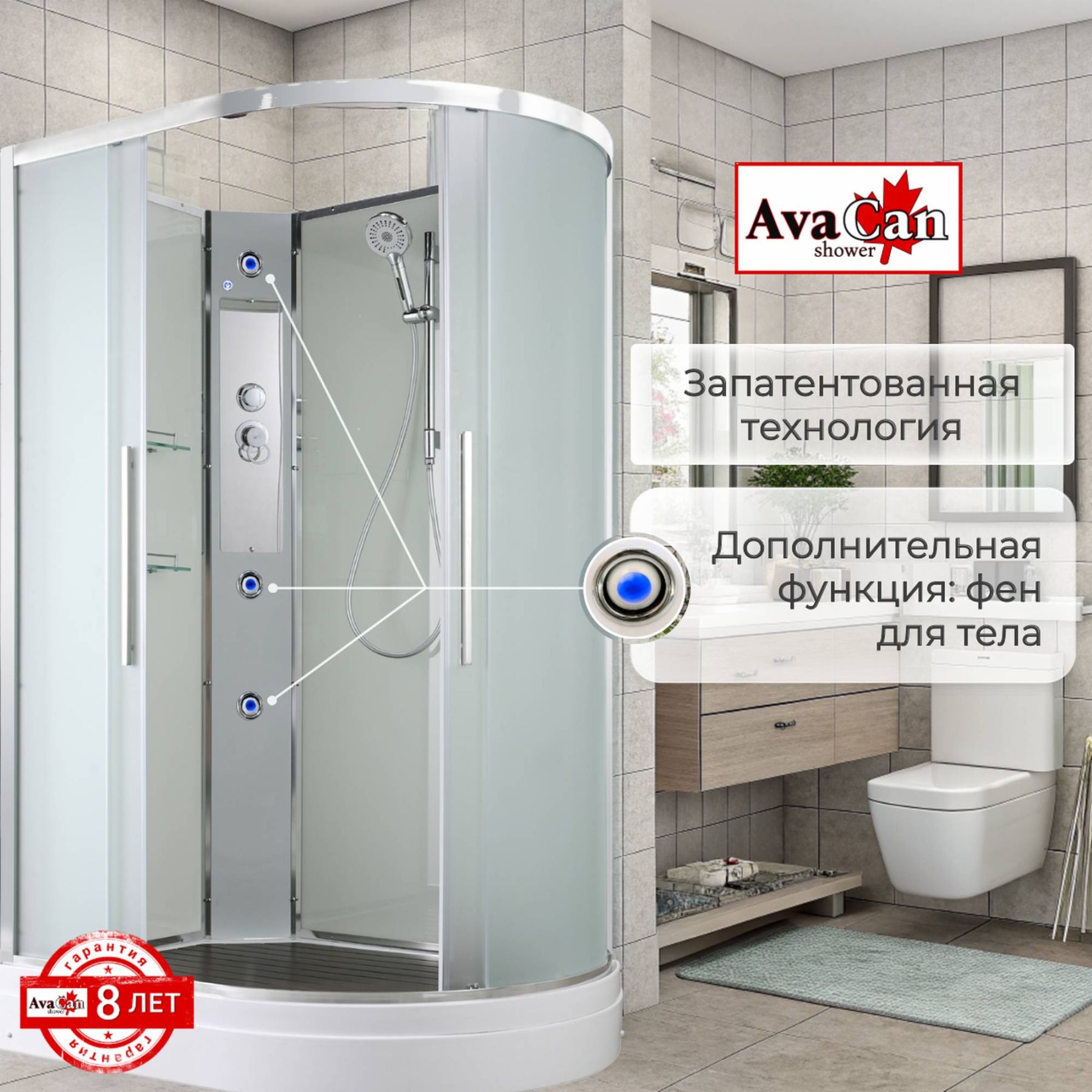 Стильная душевая кабина AvaCan EM2811LN сочетает в себе высокую функциональность, практичность и надежность. При изготовлении применяется безопасное закаленное стекло толщиной 5 мм (матовое), надежно фиксируемое алюминиевым профилем. Сборка без силикона (увеличивает срок службы), внутренняя сборка(облегчает установку и ревизию; позволяет установить в ограниченном пространстве), смеситель резьбовой (без хомутов). Съемный экран поддона (позволяет осуществлять ревизию сифона). Цвет профиля хром. Двойные металлические ролики дверей (увеличивают срок службы).В комплекте : душевая штанга, две полочки , арома-лейка с витамином С (картридж съемный),полимерная вставка в поддон(имитация дерева),сифон, ручки дверей из нержавейки , двойные ролики .