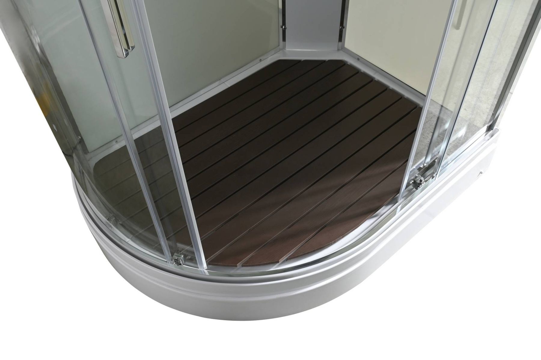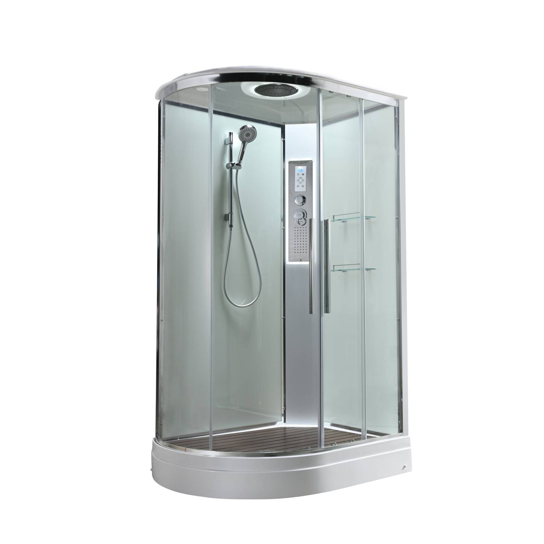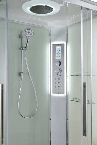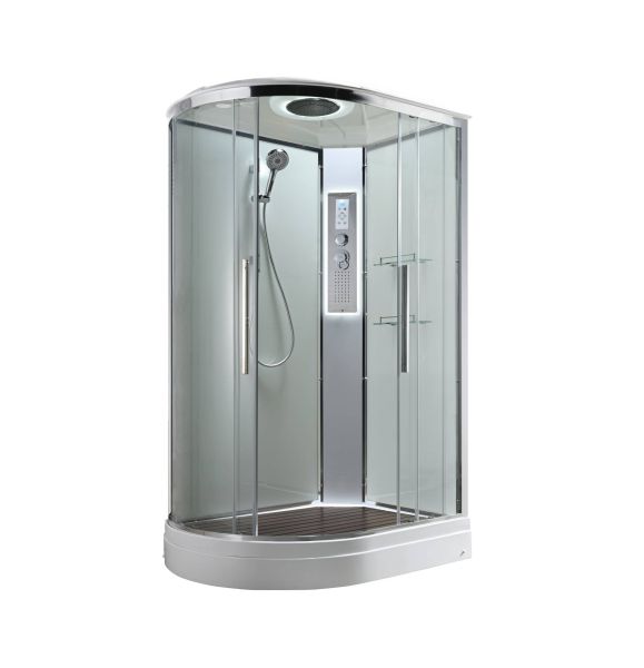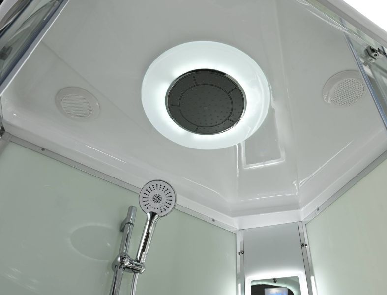 Стильная душевая кабина AvaCan EM2811RLEDT сочетает в себе высокую функциональность, практичность и надежность. При изготовлении применяется безопасное закаленное стекло толщиной 5 мм (прозрачное), надежно фиксируемое алюминиевым профилем. Сборка без силикона (увеличивает срок службы), внутренняя сборка(облегчает установку и ревизию; позволяет установить в ограниченном пространстве), смеситель резьбовой (без хомутов). Съемный экран поддона (позволяет осуществлять ревизию сифона). Цвет профиля  хром. Двойные металлические ролики дверей (увеличивают срок службы).В комплекте : душевая штанга, две полочки , тропический (верхний) душ, арома-лейка с витамином С (картридж съемный),полимерная вставка в поддон(имитация дерева),сифон, ручки дверей из нержавейки , двойные ролики ,пульт сенсорный(Блютуз ,LED подсветка ,радио ,вытяжка),гидромассаж спины.
