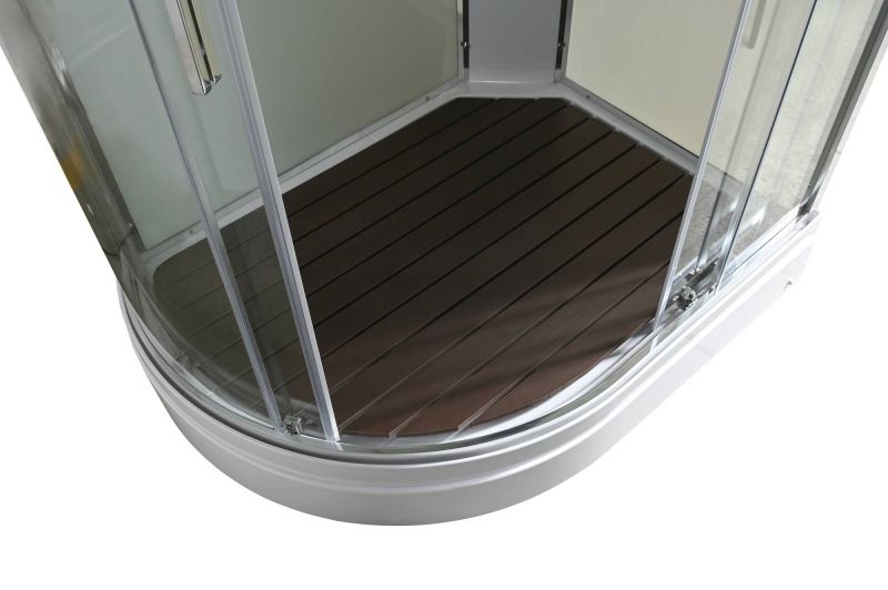 Стильная душевая кабина AvaCan EM2811RT сочетает в себе высокую функциональность, практичность и надежность. При изготовлении применяется безопасное закаленное стекло толщиной 5 мм (прозрачное), надежно фиксируемое алюминиевым профилем. Сборка без силикона (увеличивает срок службы), внутренняя сборка(облегчает установку и ревизию; позволяет установить в ограниченном пространстве), смеситель резьбовой (без хомутов). Съемный экран поддона (позволяет осуществлять ревизию сифона). Цвет профиля  хром. Двойные металлические ролики дверей (увеличивают срок службы).В комплекте : душевая штанга, две полочки , тропический (верхний) душ, арома-лейка с витамином С (картридж съемный),полимерная вставка в поддон(имитация дерева),сифон, ручки дверей из нержавейки , двойные ролики .