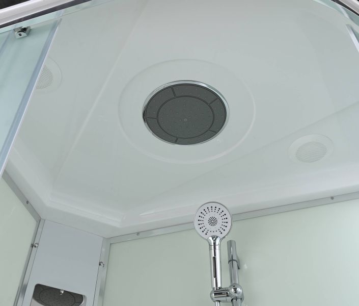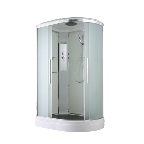 Стильная душевая кабина AvaCan EM2812L сочетает в себе высокую функциональность, практичность и надежность. При изготовлении применяется безопасное закаленное стекло толщиной 5 мм (матовое), надежно фиксируемое алюминиевым профилем. Сборка без силикона (увеличивает срок службы), внутренняя сборка(облегчает установку и ревизию; позволяет установить в ограниченном пространстве), смеситель резьбовой (без хомутов). Съемный экран поддона (позволяет осуществлять ревизию сифона). Цвет профиля  хром. Двойные металлические ролики дверей (увеличивают срок службы).В комплекте : душевая штанга, две полочки , тропический (верхний) душ, арома-лейка с витамином С (картридж съемный),полимерная вставка в поддон(имитация дерева),сифон, ручки дверей из нержавейки , двойные ролики .