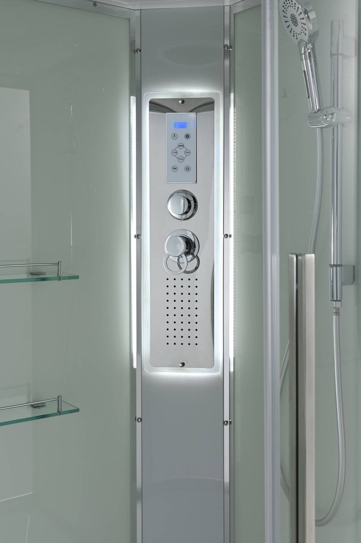 Стильная душевая кабина AvaCan сочетает в себе высокую функциональность, практичность и надежность. При изготовлении применяется безопасное закаленное стекло, надежно фиксируемое алюминиевым профилем.Профиль сделан из алюминия повышенной прочности. Сборка без силикона (увеличивает срок службы, защищает от протечек), внутренняя сборка (облегчает установку и ревизию; позволяет установить в ограниченном пространстве и обойтись без демонтажа других сантехнических приборов), смеситель резьбовой (без хомутов). Съемный экран поддона (позволяет осуществлять подключение и ревизию сифона).Двойные металлические ролики дверей (распределение нагрузки на два ролика, увеличивают срок службы). Душевая штанга(позволяет регулировать по высоте ручную лейку), ручная арома-лейка с витамином С (картридж в комплекте,есть возможность замены или удаления картриджа), полочки(из стекла, с ограничителем), сифон с гидрозатвором, сенсорный пульт управления с функциями: блютуз, LED подсветка, радио, вытяжка, гидромассаж спины, тропический (верхний) душ.