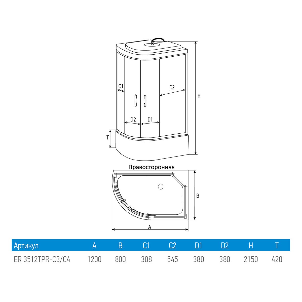 Душевая кабина Erlit Comfort ER3512TPR-C3-RUS