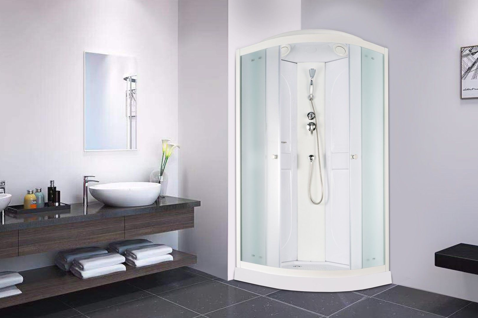 • Поддон: низкий 10 см, полукруглый, с рельефным дном.