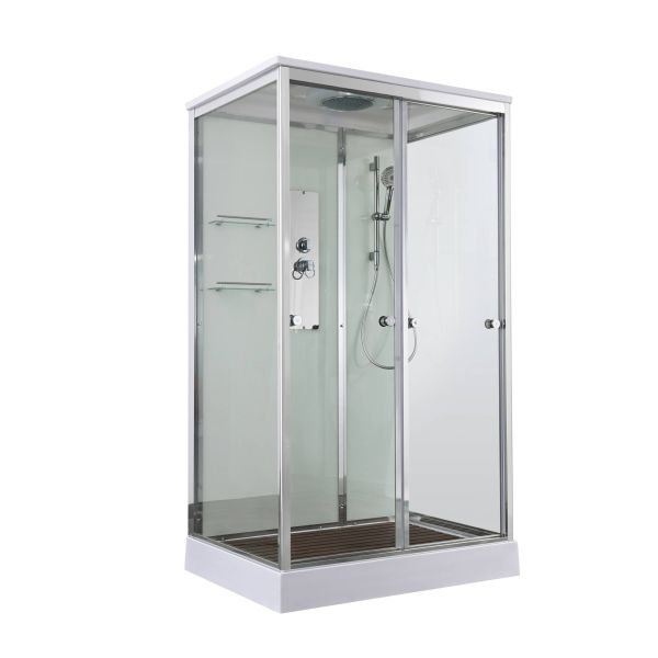 Стильная душевая кабина AvaCan сочетает в себе высокую функциональность, практичность и надежность. При изготовлении применяется безопасное закаленное стекло, надежно фиксируемое алюминиевым профилем. Профиль сделан из алюминия повышенной прочности. Сборка без силикона (увеличивает срок службы, защищает от протечек), внутренняя сборка (облегчает установку и ревизию; позволяет установить в ограниченном пространстве и обойтись без демонтажа других сантехнических приборов), смеситель резьбовой (без хомутов). Двойные металлические ролики дверей (распределение нагрузки на два ролика, увеличивают срок службы). Душевая штанга(позволяет регулировать по высоте ручную лейку), ручная арома-лейка с витамином С (картридж в комплекте,есть возможность замены или удаления картриджа), полочки(из стекла, с ограничителем), сифон с гидрозатвором.