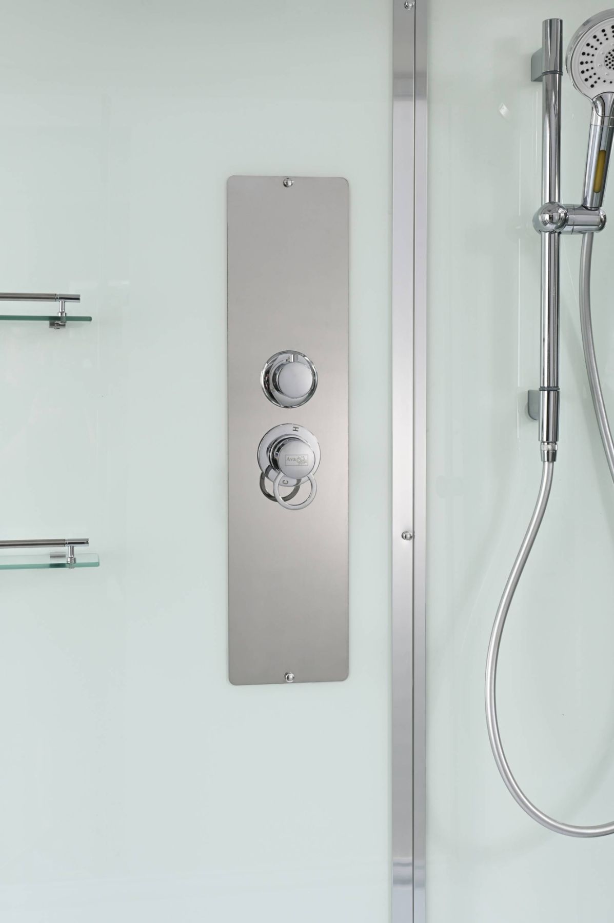 Стильная душевая кабина AvaCan сочетает в себе высокую функциональность, практичность и надежность. При изготовлении применяется безопасное закаленное стекло, надежно фиксируемое алюминиевым профилем. Профиль сделан из алюминия повышенной прочности. Сборка без силикона (увеличивает срок службы, защищает от протечек), внутренняя сборка (облегчает установку и ревизию; позволяет установить в ограниченном пространстве и обойтись без демонтажа других сантехнических приборов), смеситель резьбовой (без хомутов).Съемный экран поддона (позволяет осуществлять подключение и ревизию сифона).Двойные металлические ролики дверей (распределение нагрузки на два ролика, увеличивают срок службы). Душевая штанга(позволяет регулировать по высоте ручную лейку), ручная арома-лейка с витамином С (картридж в комплекте,есть возможность замены или удаления картриджа), полочки(из стекла, с ограничителем), сифон с гидрозатвором.