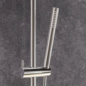 Душевая лейка Damixa Scandinavian Pure 936020000 хромЛейка для душа от бренда Damixa коллекции Scandinavian Pure - воплощение минималистичного датского дизайна и солидного скандинавского качества. Элегантные обтекаемые формы и ювелирный блеск станут настоящим украшением современной ванной комнаты. Размер (Ш/Г/В): 24x24x216 мм. Размер ручного душа - 24 мм. Материал - пластик. Цвет - хром.