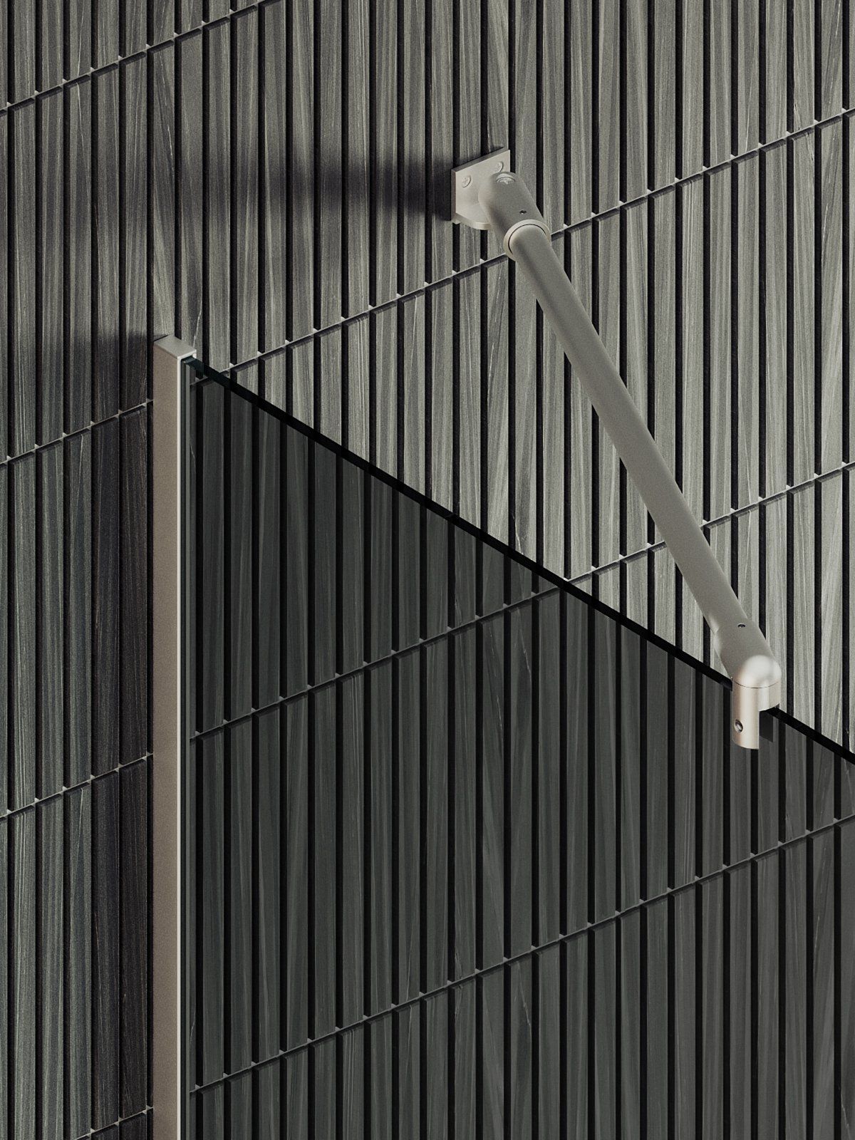 Душевая перегородка в профиле с полотенцесушителем представляет собой компактное и функциональное решение для разделения пространства в ванной комнате . Она изготовлена из закаленного стекла,анодированного алюминиевого профиля, что обеспечивает прочность и долговечность конструкции. Закаленное стекло , цвет графит , толщина 8 мм , 1950*790-1 шт.
