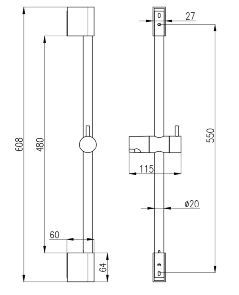 Душевая штанга Rav Slezak PD0015MG серыйPD0015MG Душевая штанга 60 см d20 мм., металл/пластик, цвет серый металлик