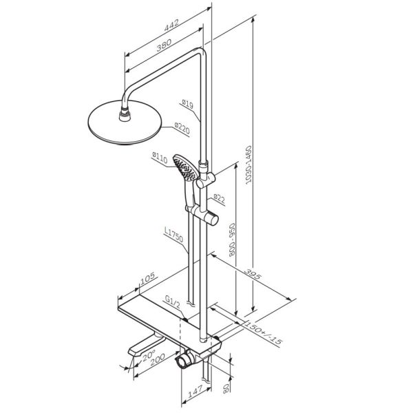 - Размер верхнего душа, см:22