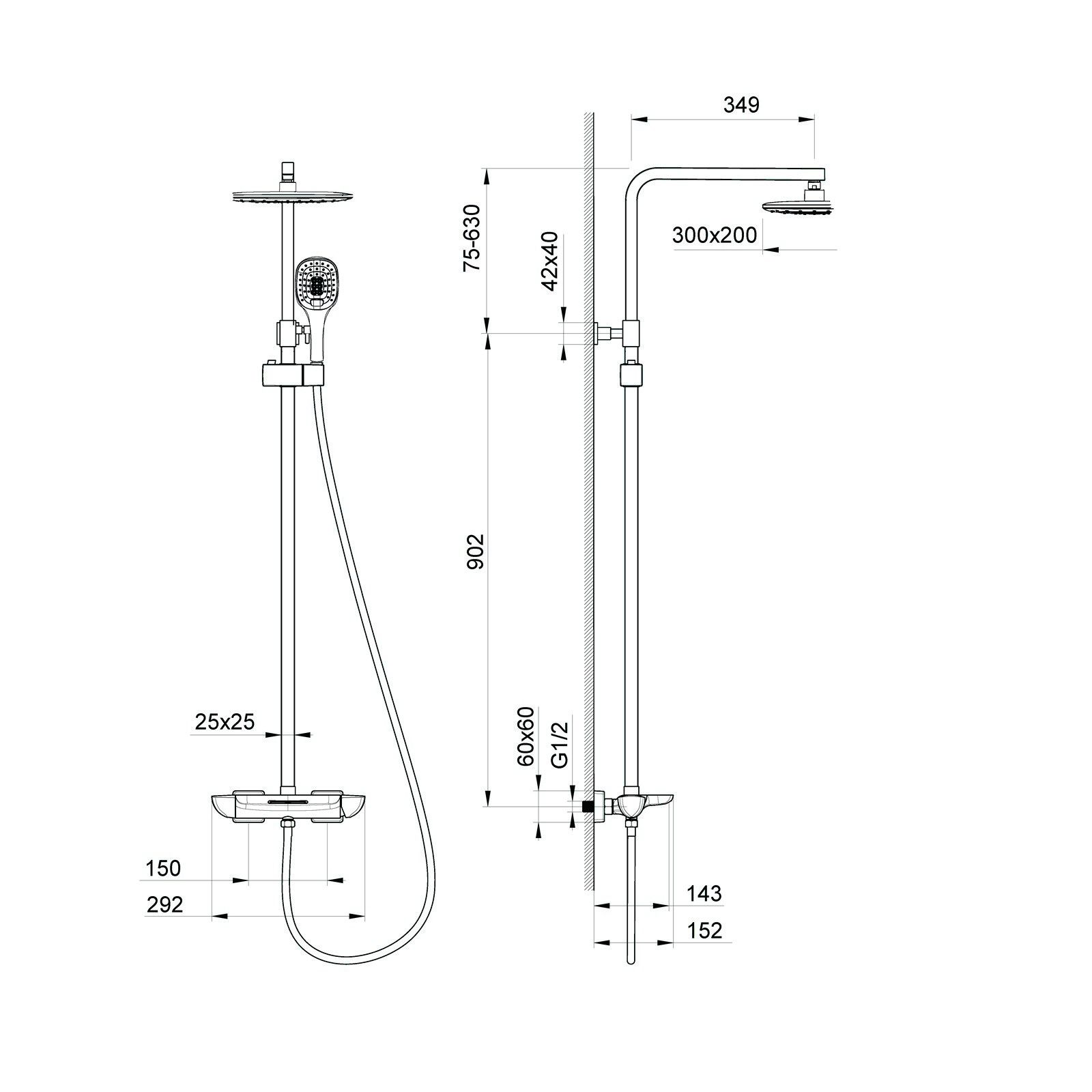 - Размер верхнего душа, см:30