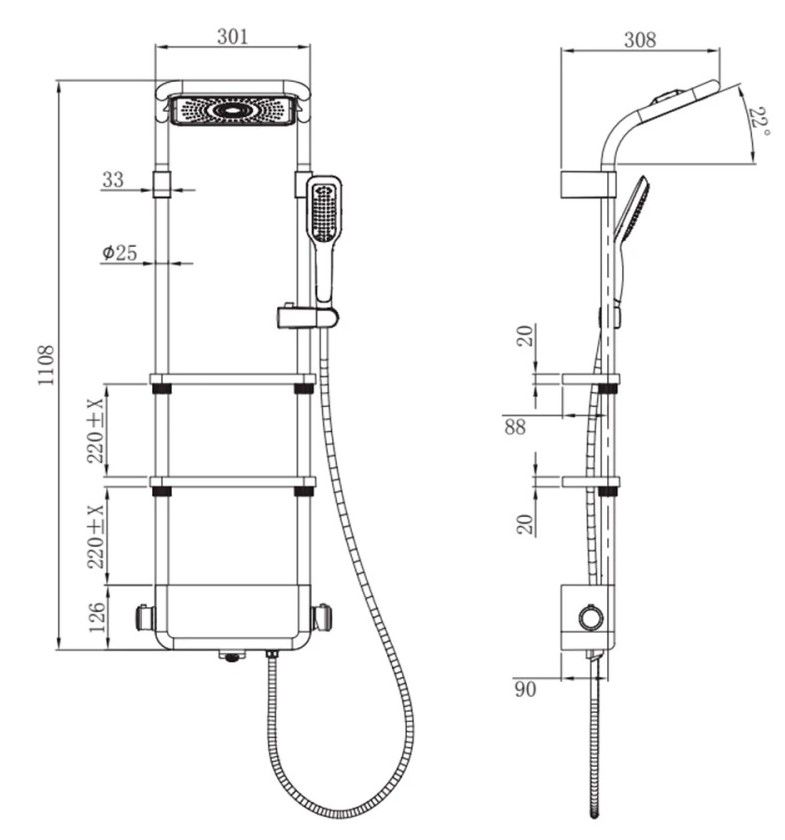 • Размер верхнего душа, см: