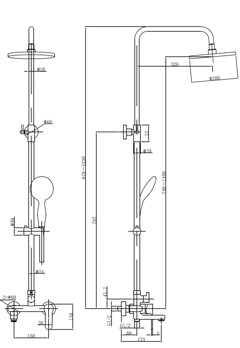 - Размер верхнего душа, см:20