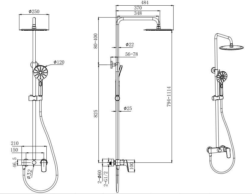 Душевая стойка Aquatek AQ2060MB чёрный матовый