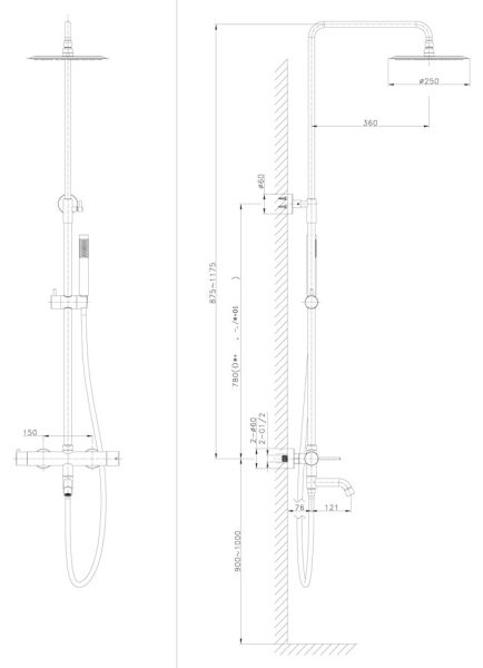 душевой шланг ПВХ 150см, душевая труба из латуни,