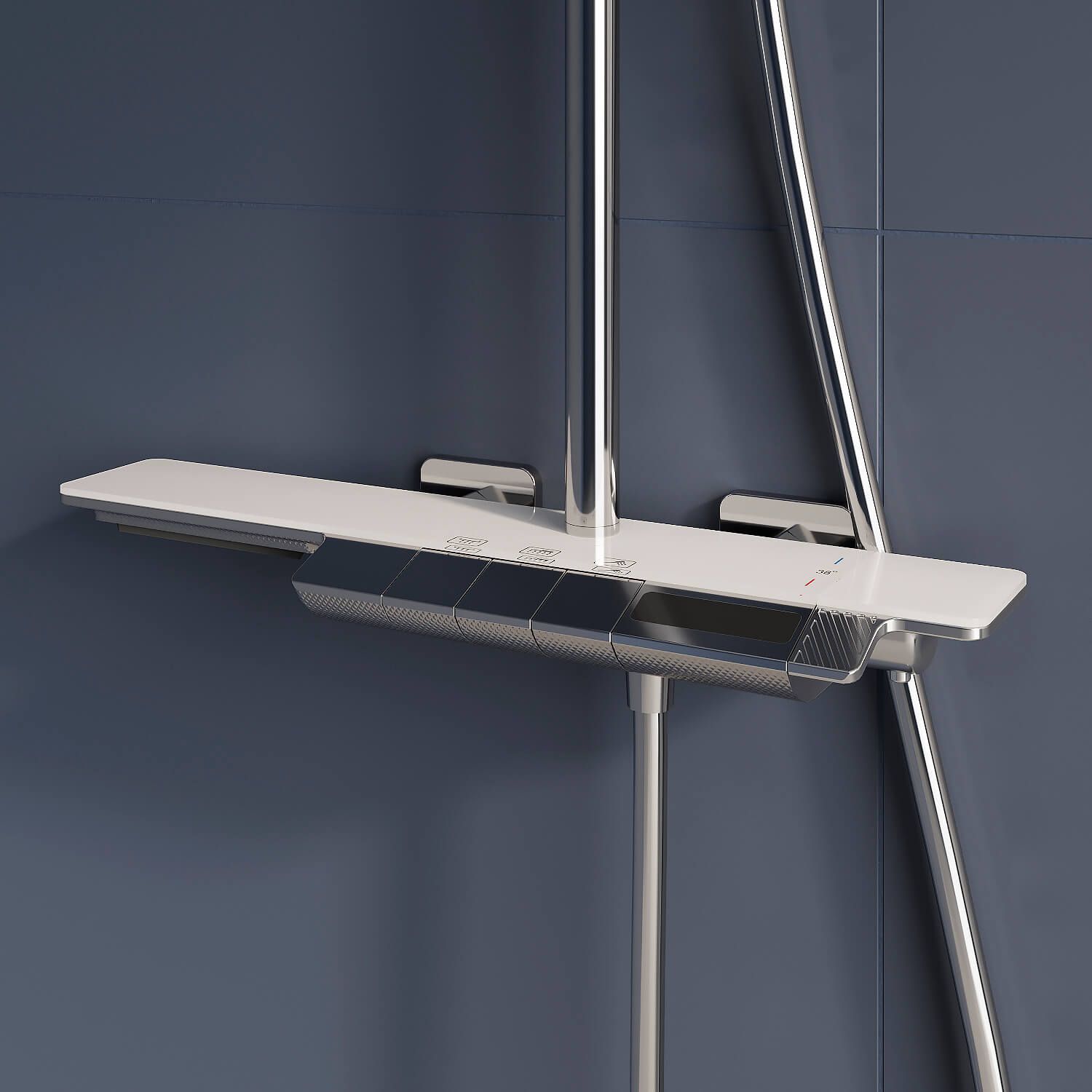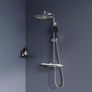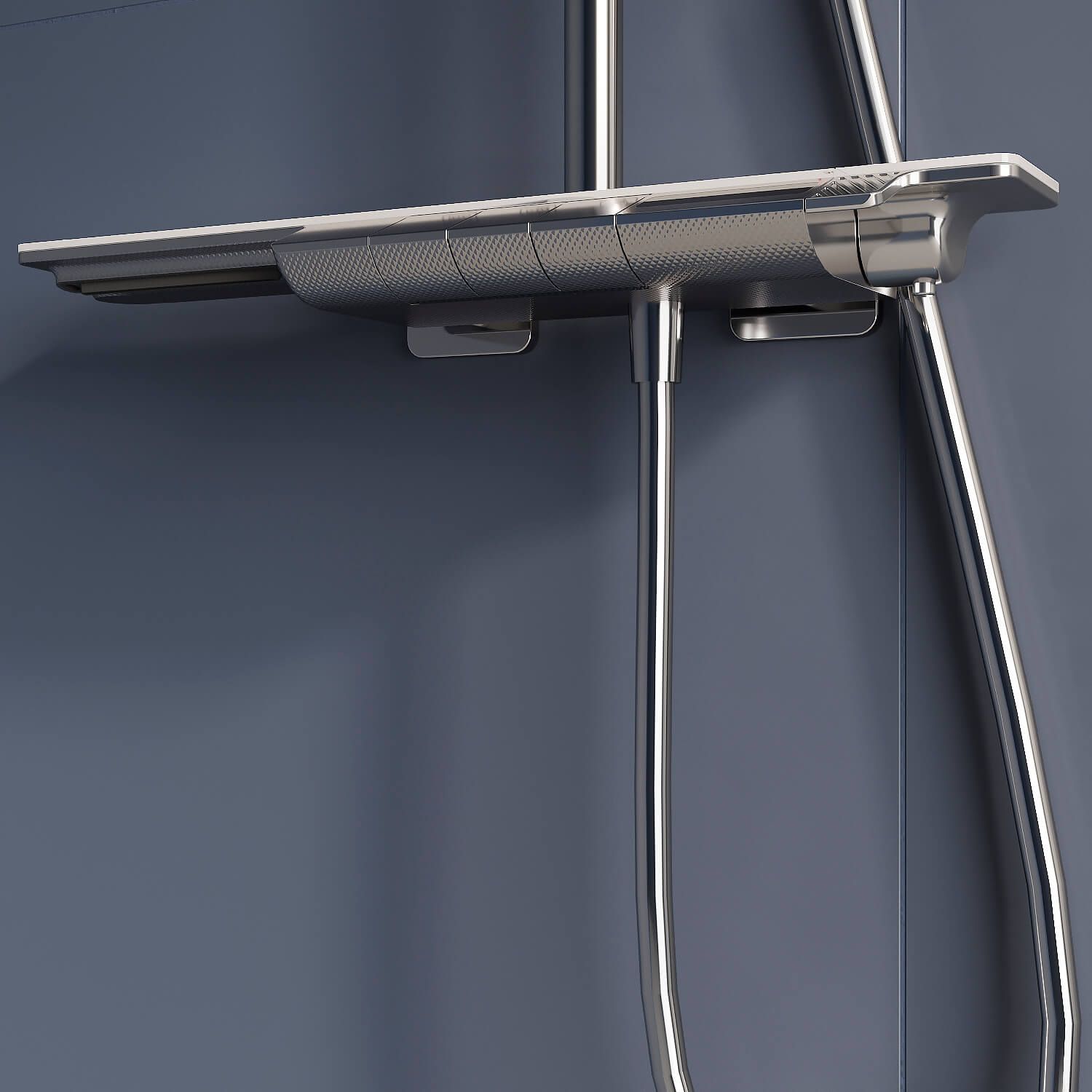 • Вместительная стеклянная полка для душевых принадлежностей;