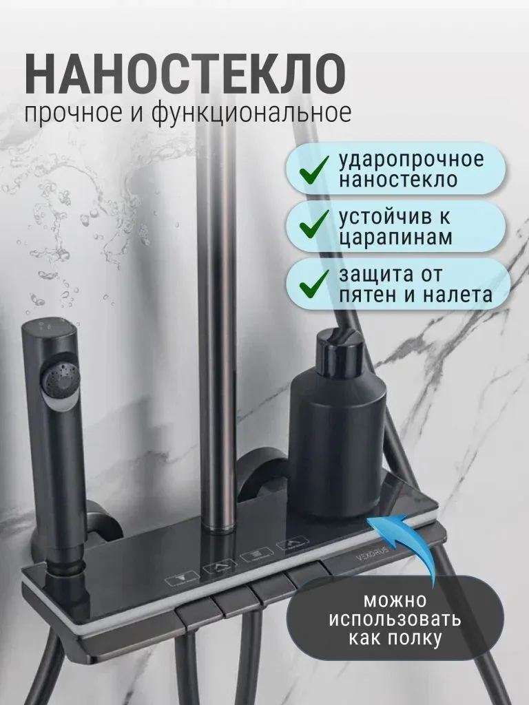 Душевая система с краном бренда Vexorus - это идеальный выбор для тех, кто ценит качество, стиль и комфорт. Представленное оборудование является надежным и долговечным, что позволяет использовать его на протяжении многих лет.