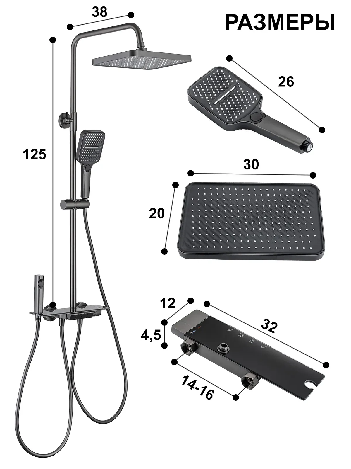 Душевая система с тропическим душем Vexorus - это система, которая превратит вашу ванную комнату в настоящий уголок роскоши и комфорта. Изделие выполнено в графитовом цвете, что позволяет гармонично его использовать в современном интерьере.