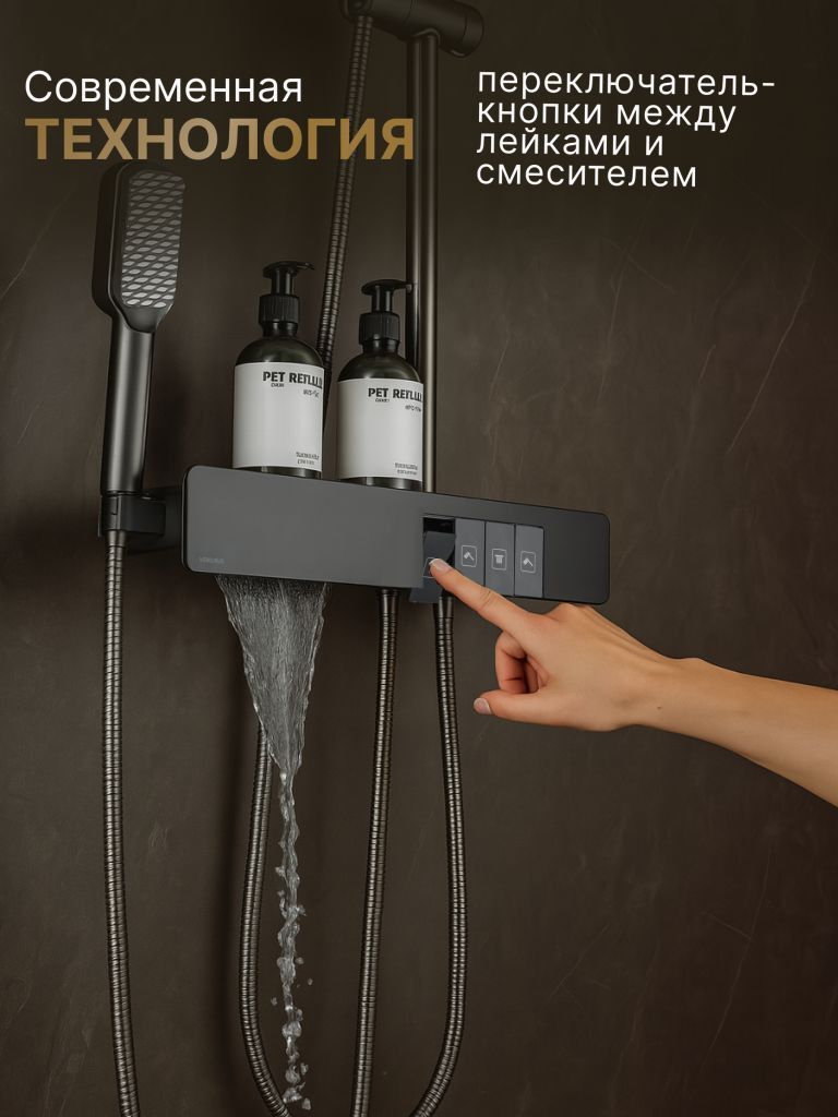 Душевая система с тропическим душем Vexorus - это система, которая превратит вашу ванную комнату в настоящий уголок роскоши и комфорта. Изделие выполнено в графитовом цвете, что позволяет гармонично его использовать в современном интерьере.