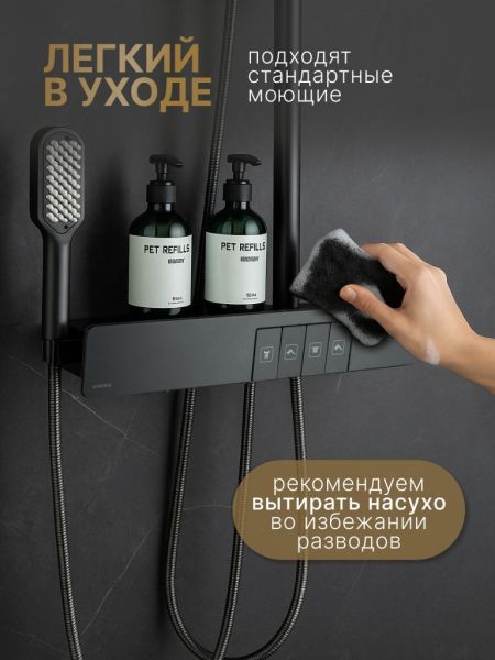 Душевой комплект содержит все необходимое для монтажа. Кроме того, наша душевая стойка с дисплеем и подсветкой имеет простой и быстрый монтаж, благодаря чему вы сможете установить ее самостоятельно без привлечения специалистов. Это позволит сэкономить время и деньги, а также получить удовольствие от процесса создания своего уютного уголка в ванной комнате.
