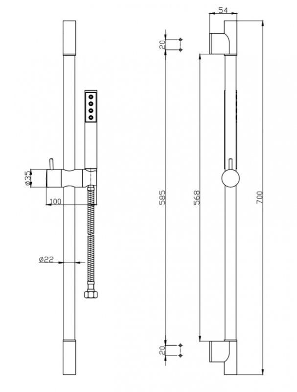 Оснащение: регулируемый держатель ручного душа,ручной душ с душевым шлангом