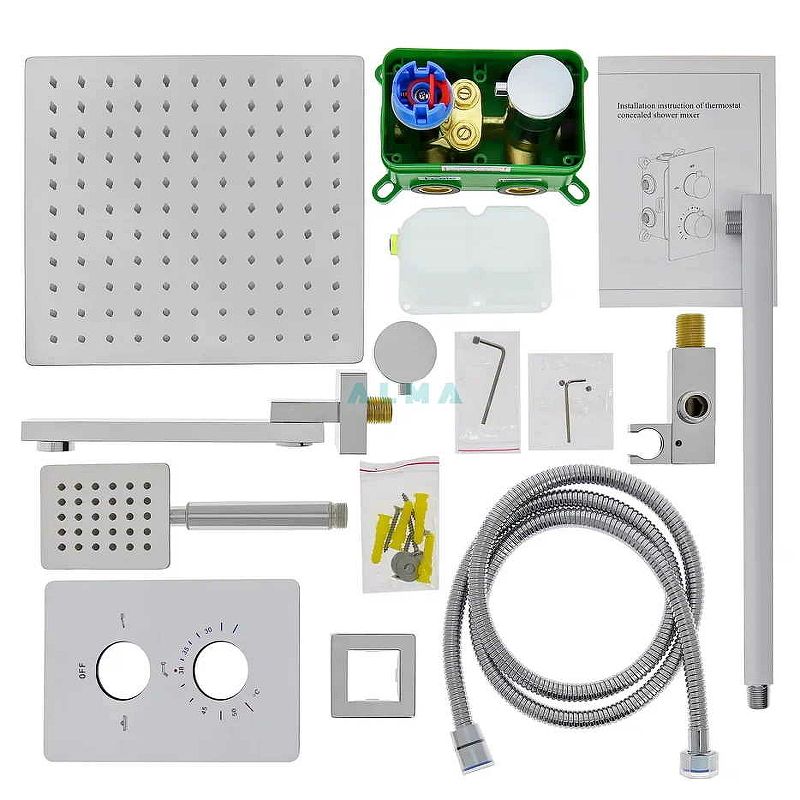 В правильно выполненном дизайне ванной комнаты нет ни одной лишней детали. Душевая система- это не только высококачественные современные технологии, это стильный дизайн и возможность добавить интересный акцент. Например, выбрав элегантный встраиваемый душевой комплект Weber с термостатом на 3 положения, цвет хром Душ для тех, кто ценит каждый момент своей жизни. Комплектация: ? Излив поворотный латунь 24 см. ? Верхняя лейка нержавеющая сталь размер 25*25 см. ? Длинна верхнего кронштейна 40 см. ? Шланг 150 см. ? Лейка ручная нержавеющая сталь. ? Встраиваемый смеситель, материал латунь ? Глубина его погружения в стену 8 см