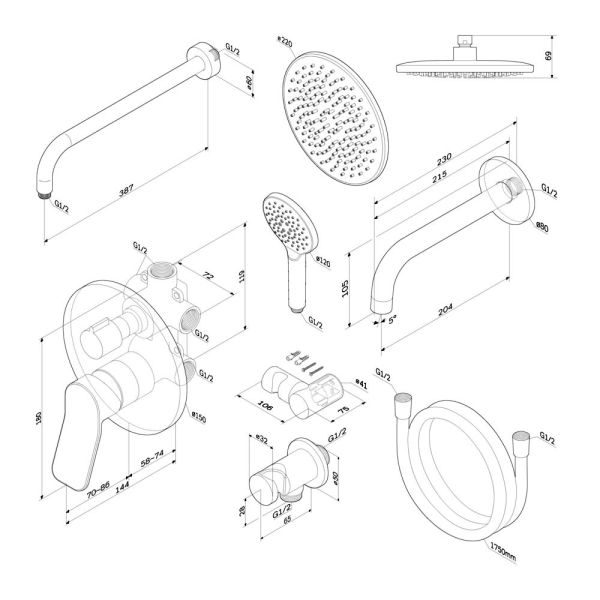 - Размер верхнего душа, см:22