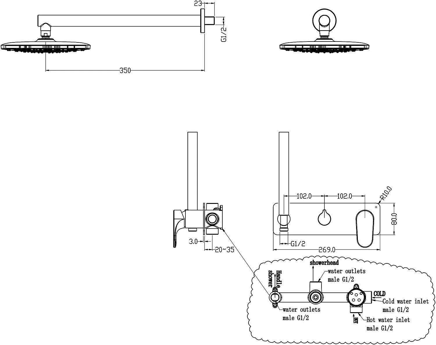 • Размер верхнего душа, см: