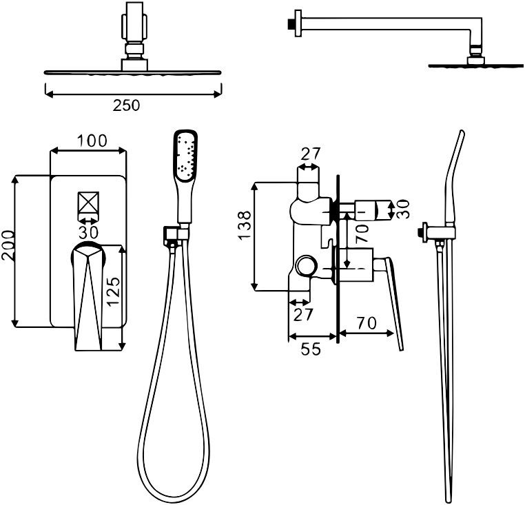 • Размер верхнего душа, см: