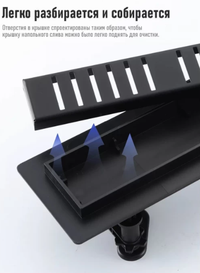 Душевой трап Gappo G86007-56 с решеткой из нержавеющей стали линейного типа. Компактный, но очень эффективный. Гарантирует скорость слива 30 литров в минуту. Гидрозатвор комбинированный, то есть сухой и мокрый. Не пропускает запахи канализации в помещение. Его легко чистить, так как он просто разбирается.