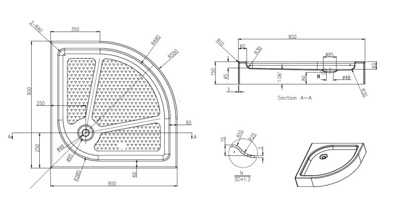 Форма:четверть круга