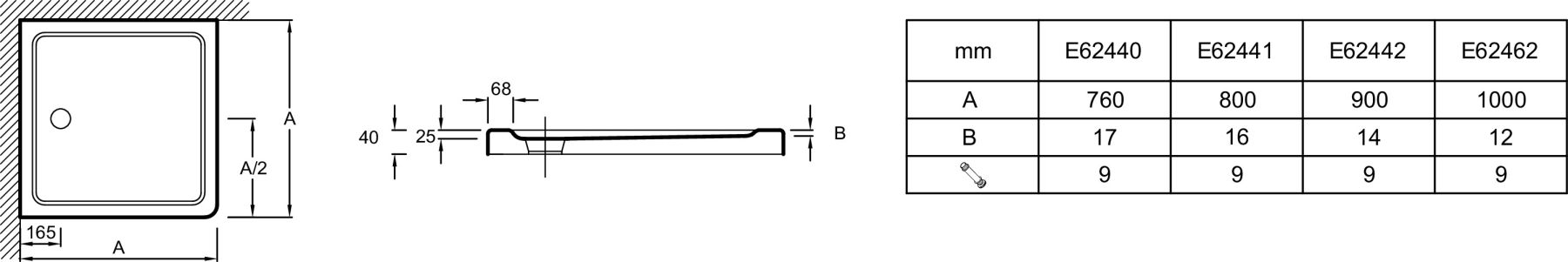 Душевой поддон Jacob Delafon Flight E62442-00 90*90 купить