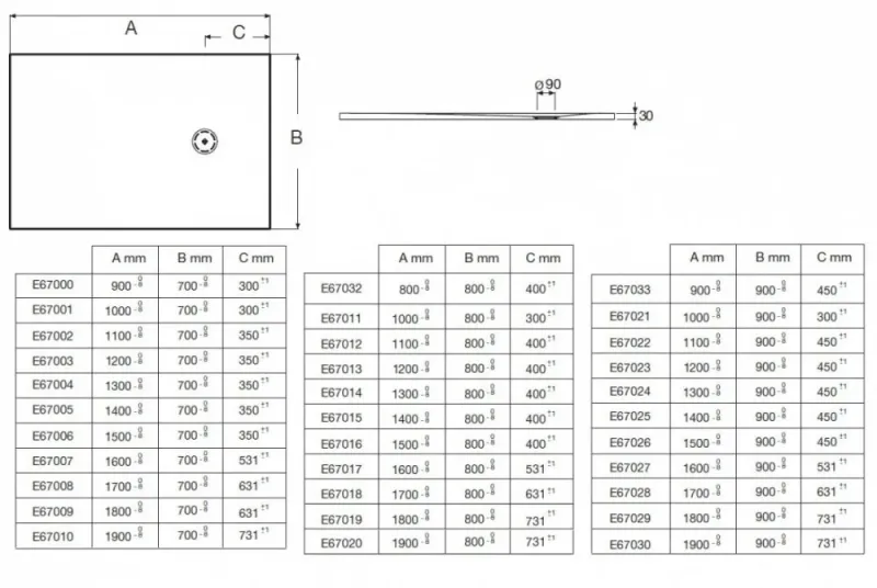 • Идеально ровные углы позволяют без проблем состыковать поддон с плиткой