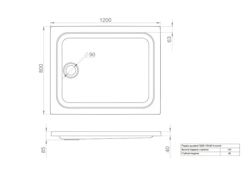 Душевой поддон Triton Щ0000042952 120x80 см белый