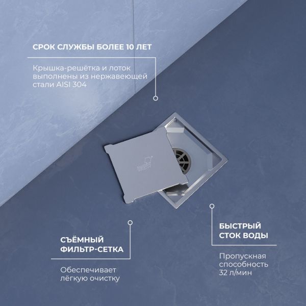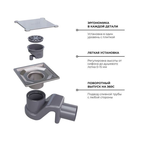 Душевой трап – это сантехническое изделие, созданное для отведения воды из зоны, где находится душевое пространство, выложенное керамической плиткой или мозаикой. Сифон в комплекте.