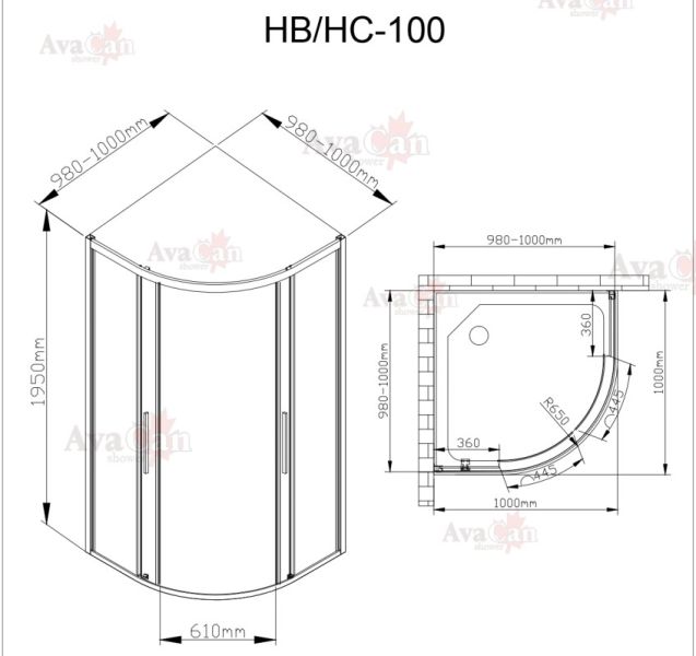 Душевой уголок AvaCan C01 100x100 см