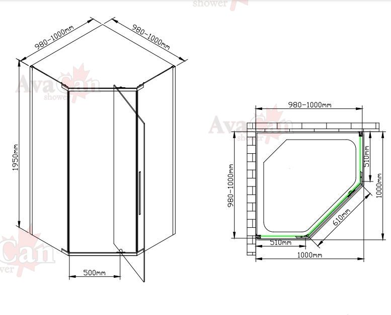 • Душевой уголок AvaCan PC 100 Chrome размер 980-1000-195
