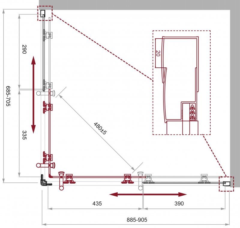 Душевой уголок BelBagno Uno 90x70 195-AH-2-90/70-C-Cr